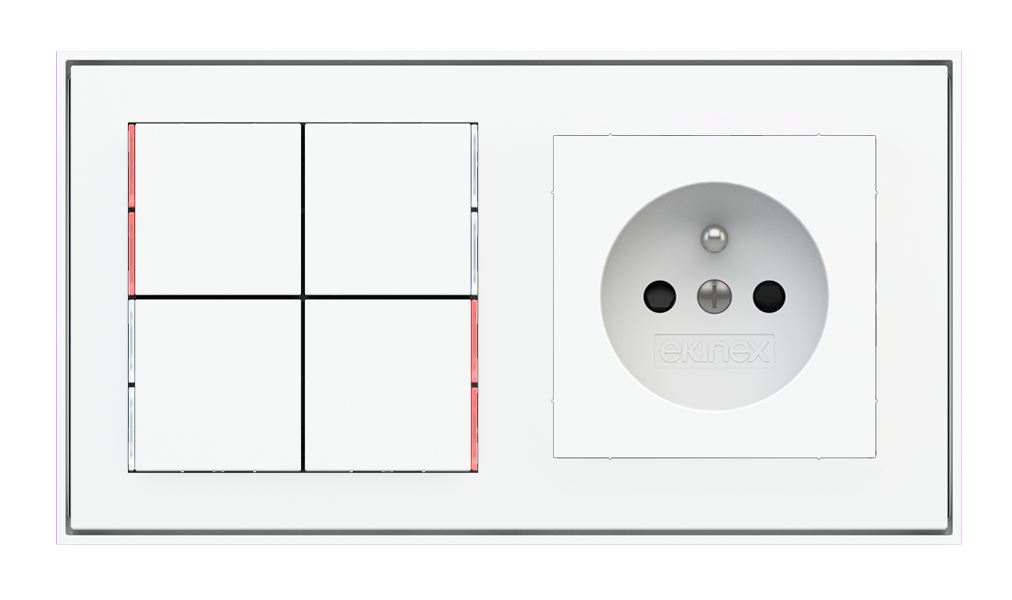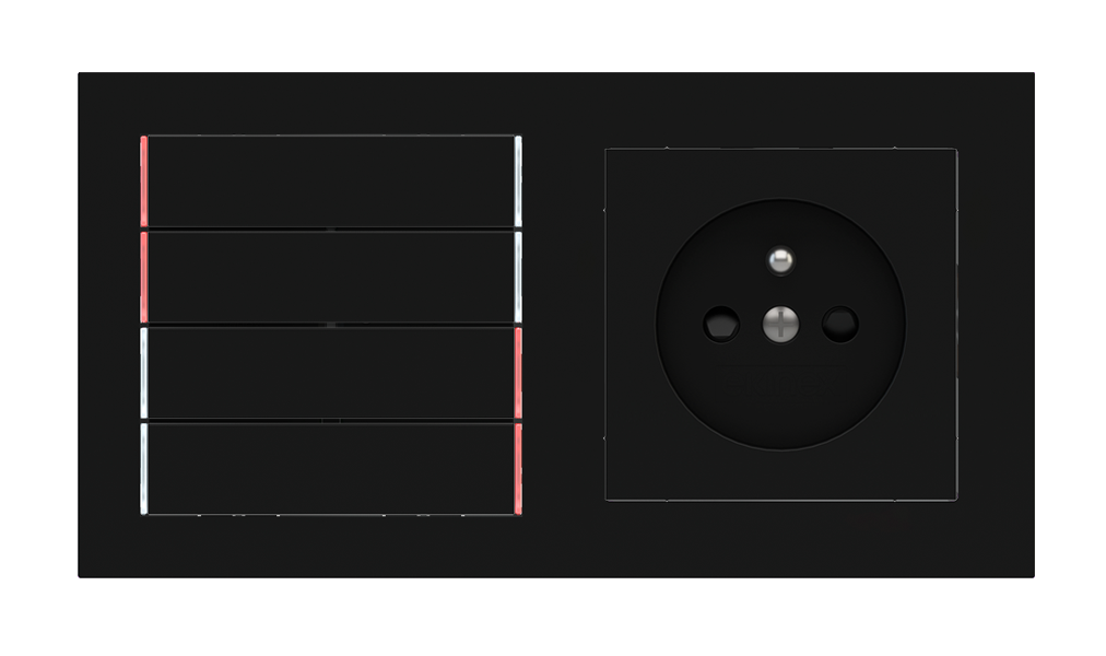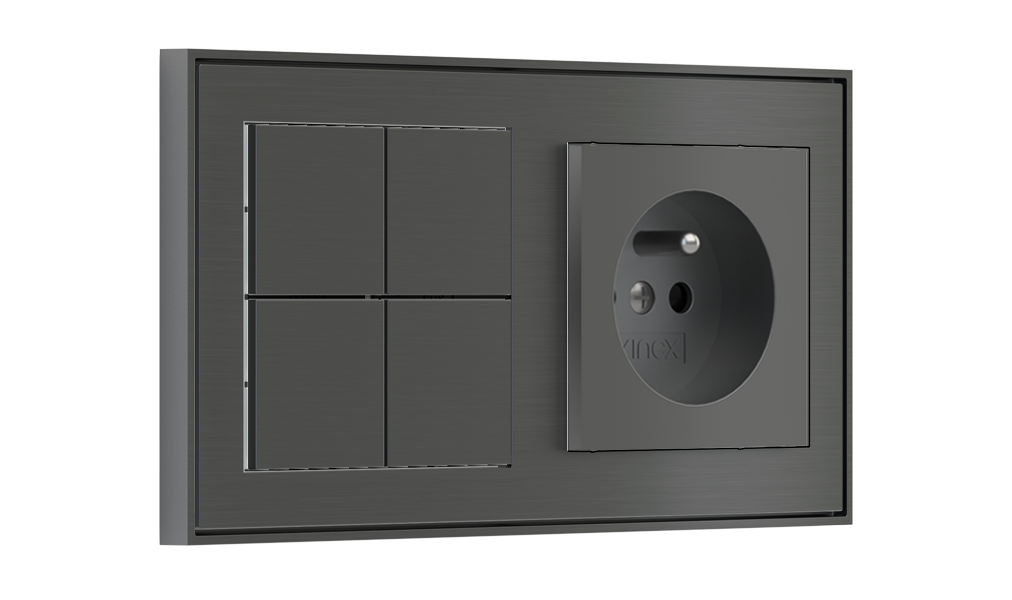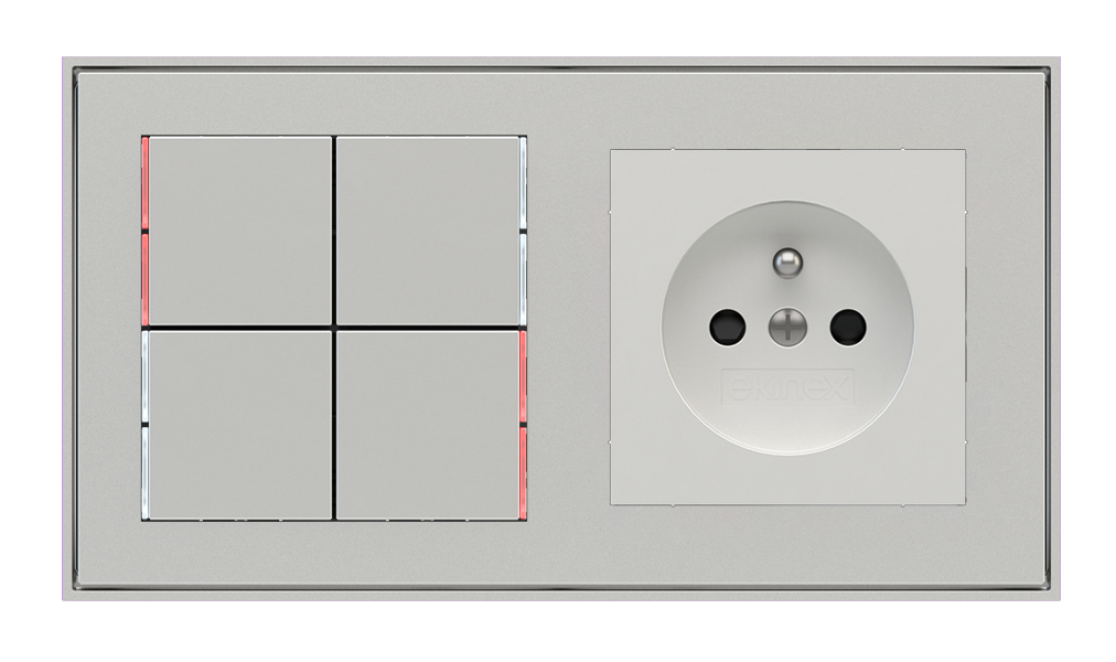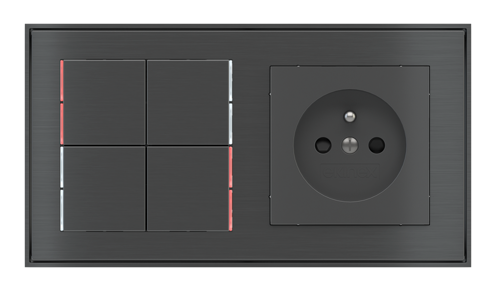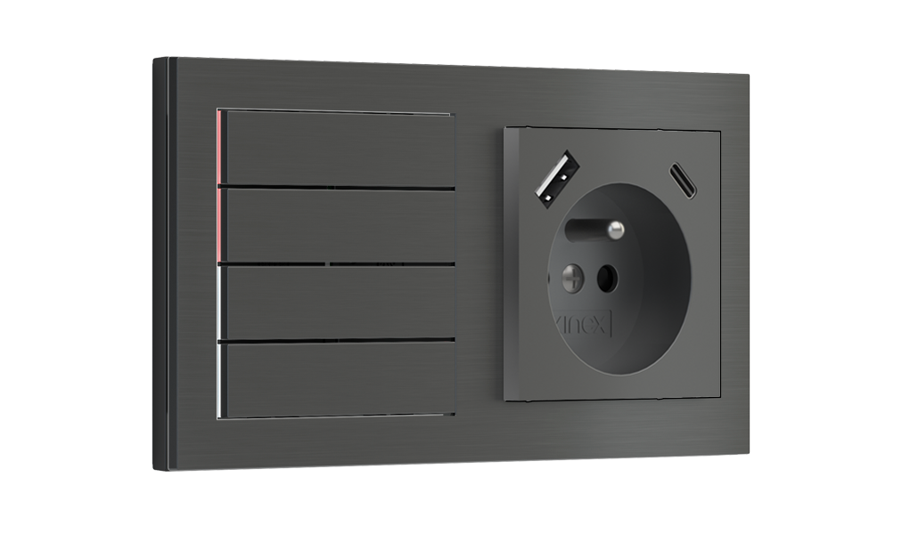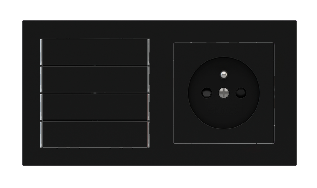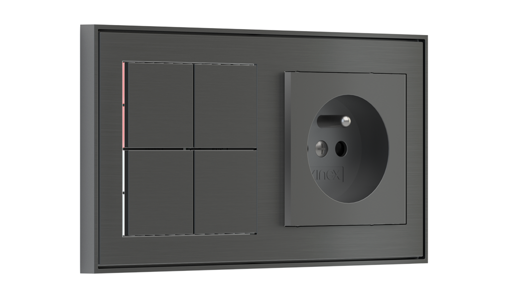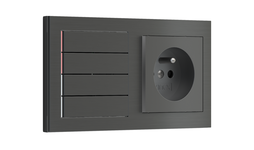 Kombinujte inteligentné ovládače s prvky tradičnej elektroinštalácie. Ovládače i zásuvky zdieľajú spoločný rámček, čo zabezpečuje jednotný a čistý vzhled interiéru.