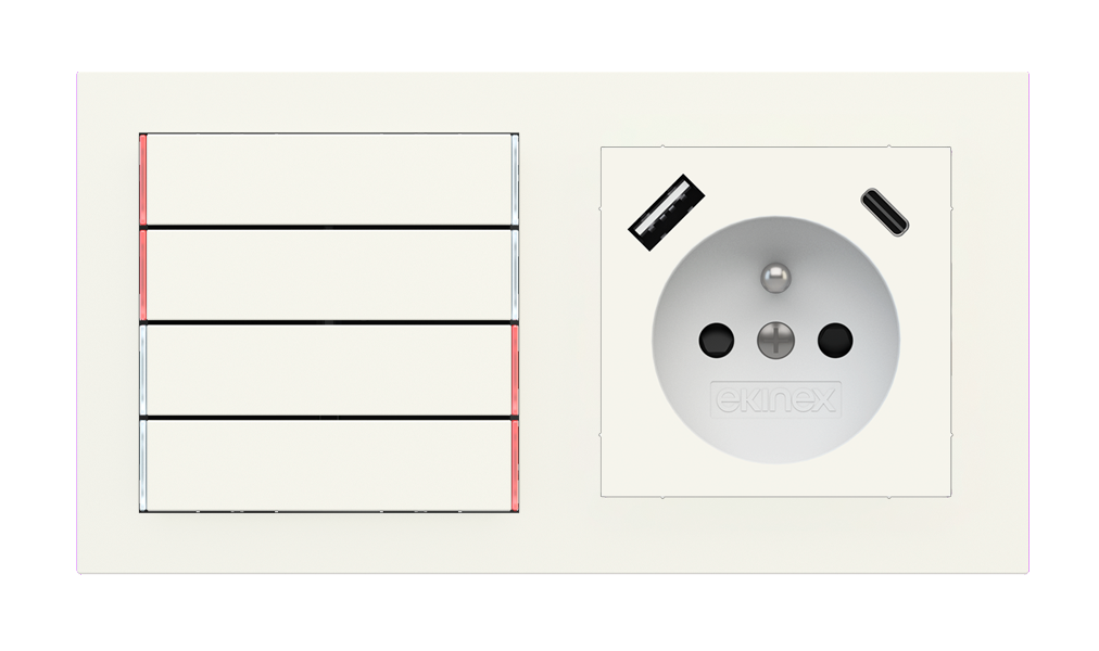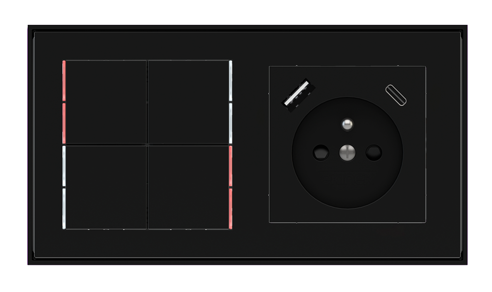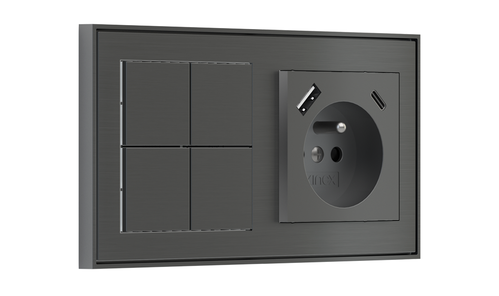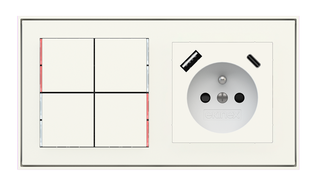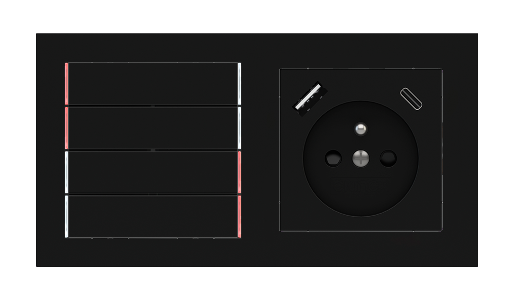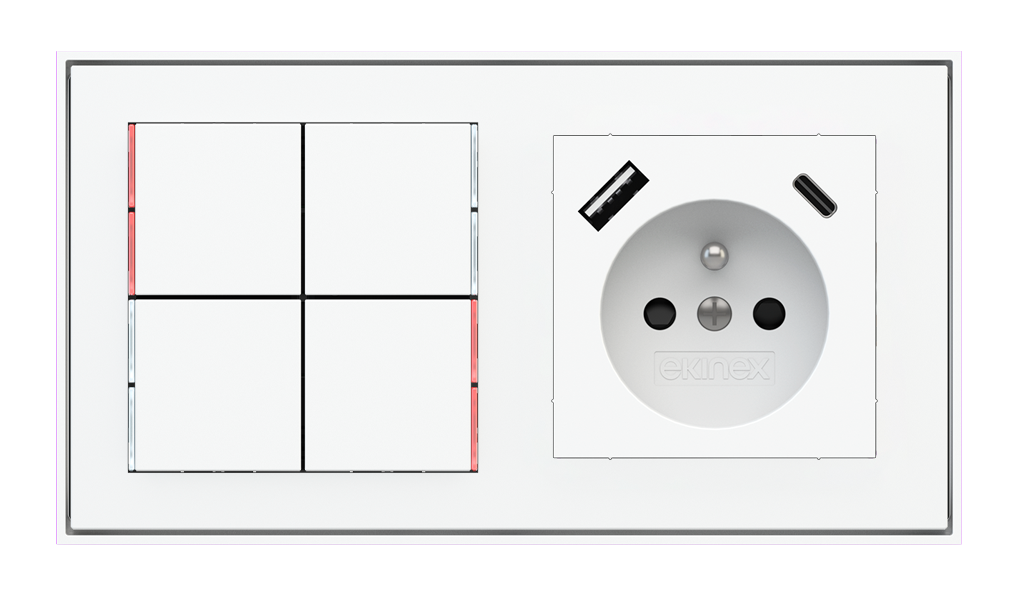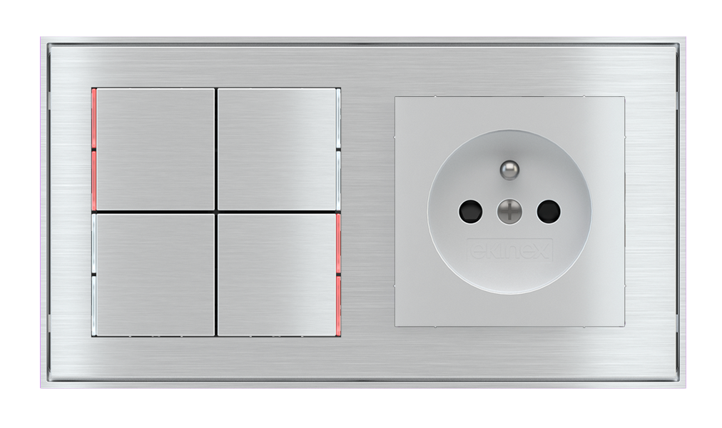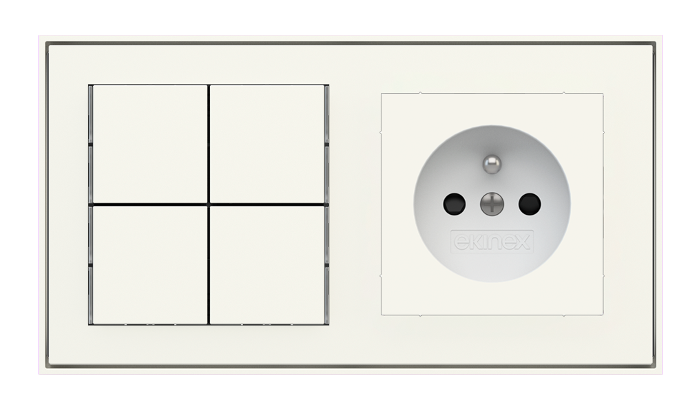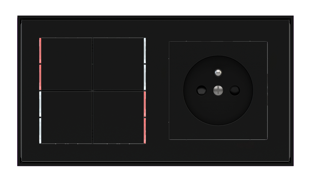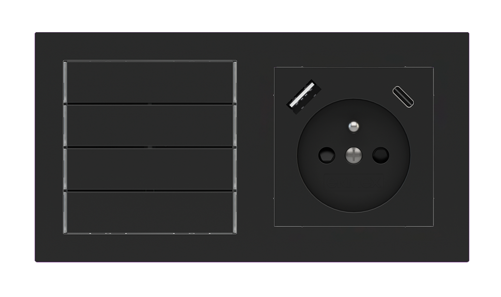 Kombinujte inteligentné ovládače s prvky tradičnej elektroinštalácie. Ovládače i zásuvky zdieľajú spoločný rámček, čo zabezpečuje jednotný a čistý vzhled interiéru.