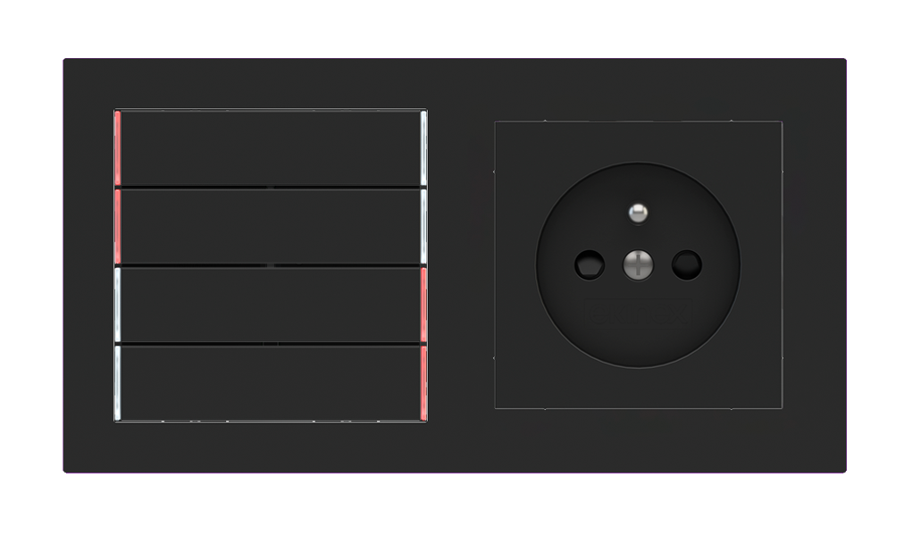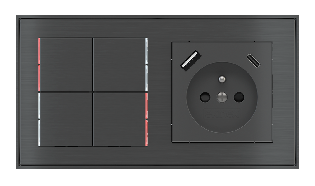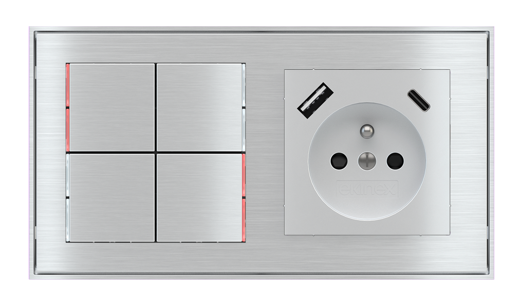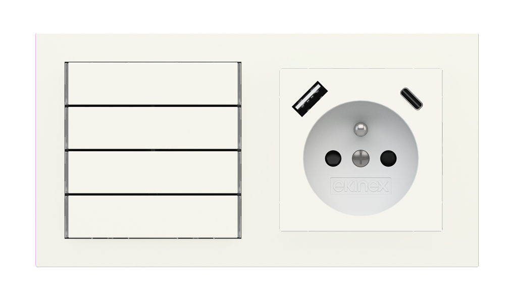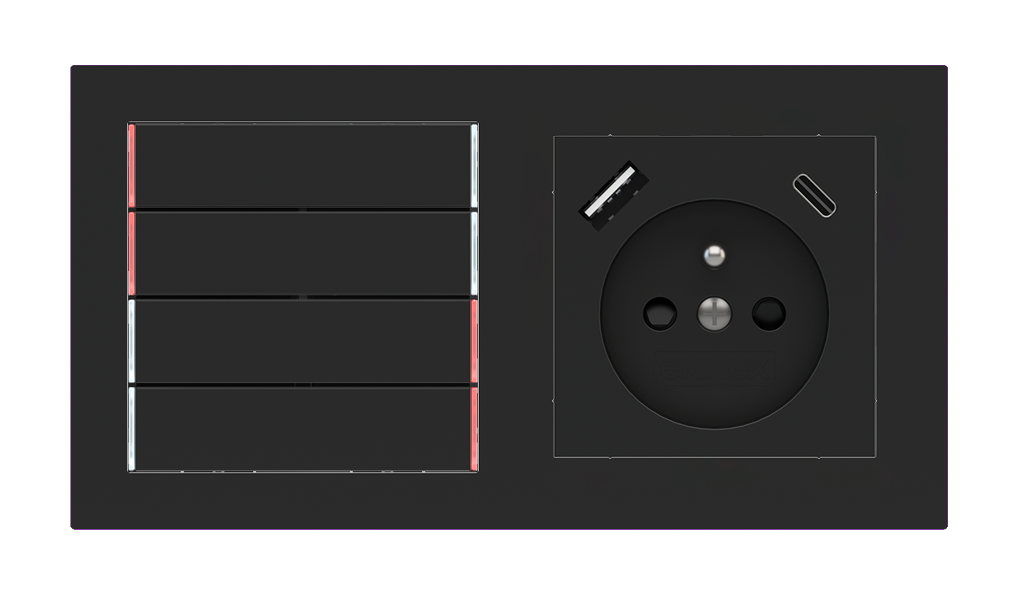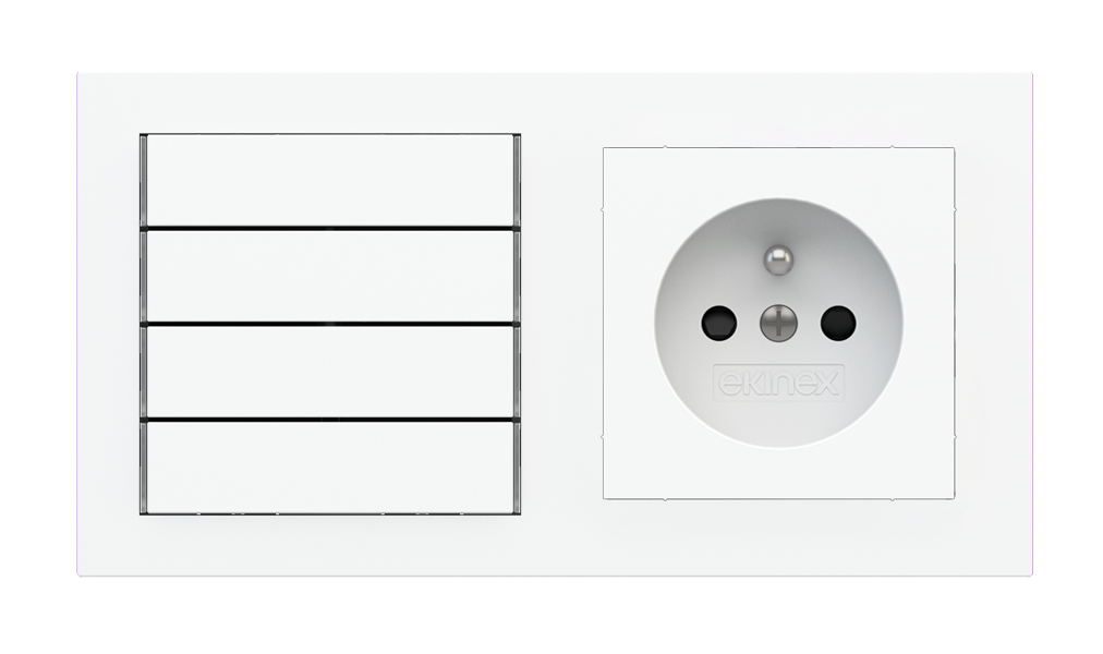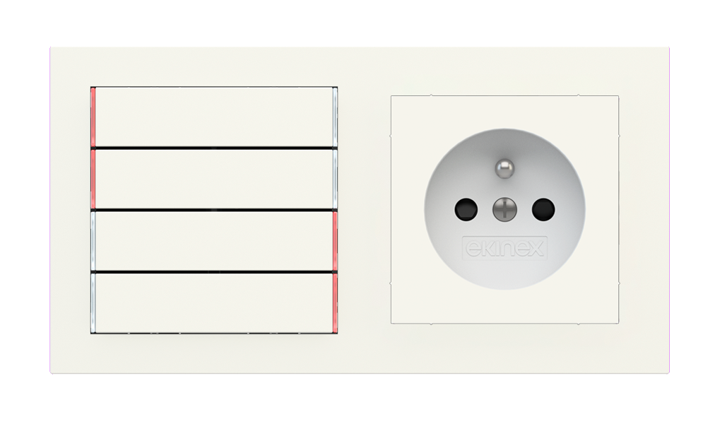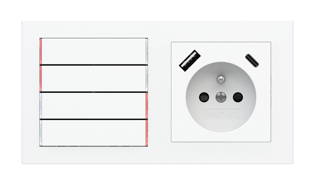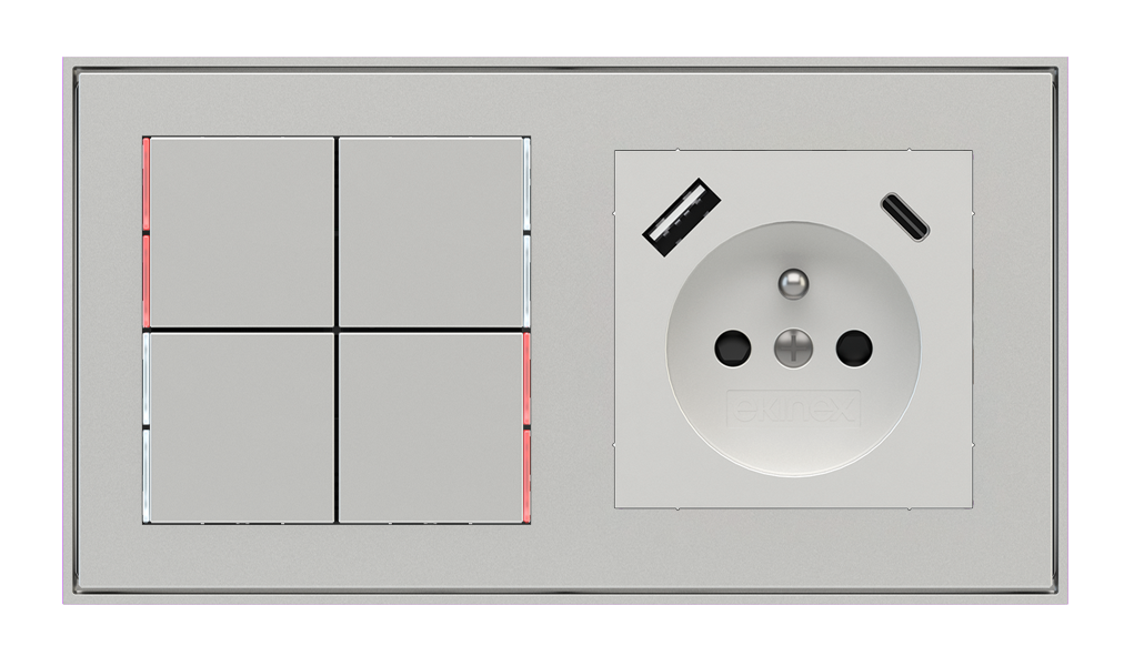 Kombinujte inteligentné ovládače s prvky tradičnej elektroinštalácie. Ovládače i zásuvky zdieľajú spoločný rámček, čo zabezpečuje jednotný a čistý vzhled interiéru.