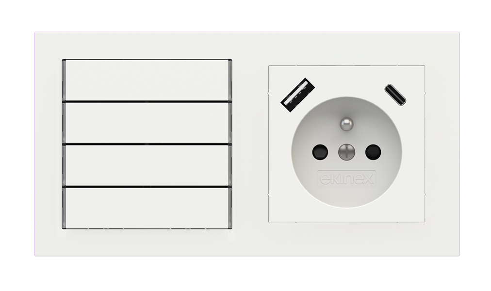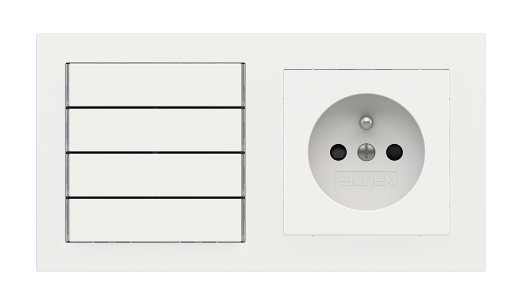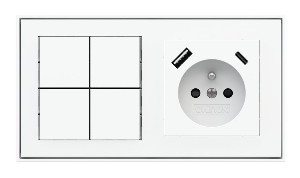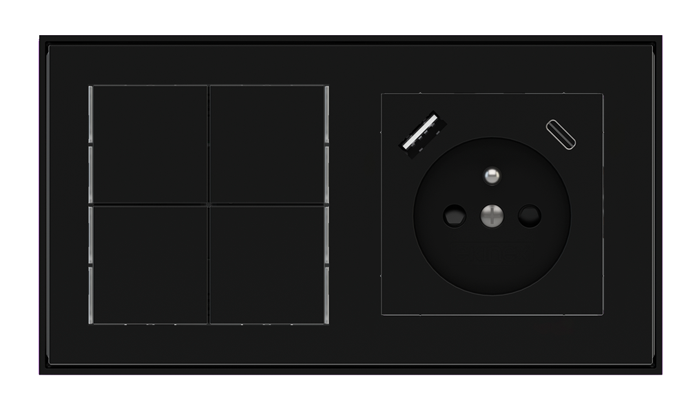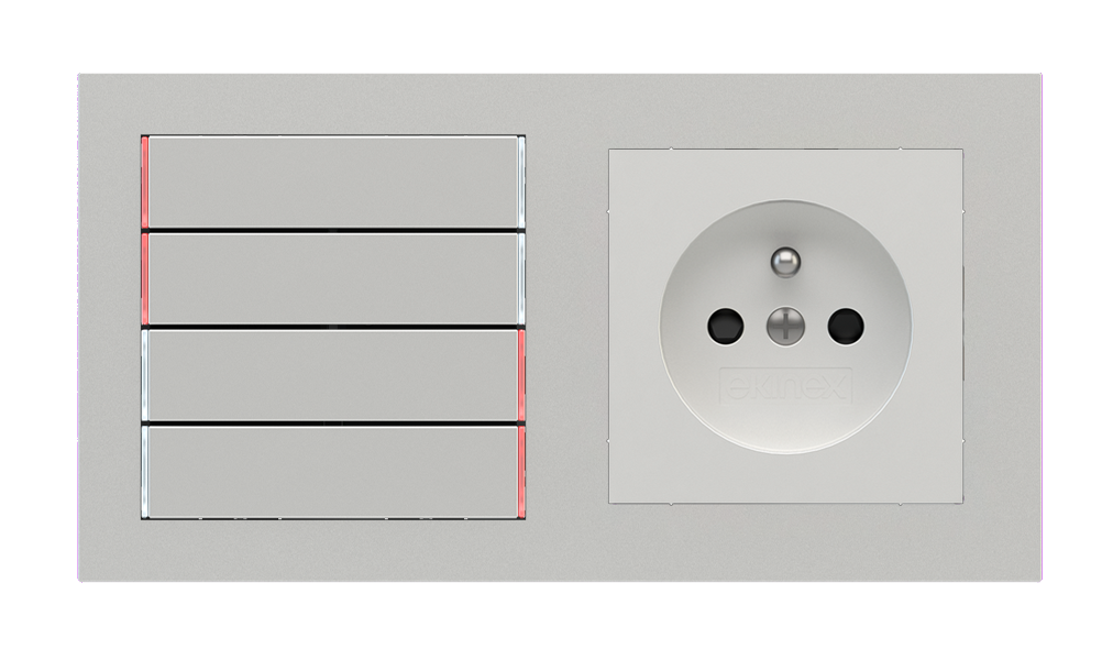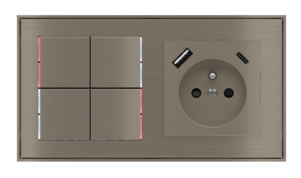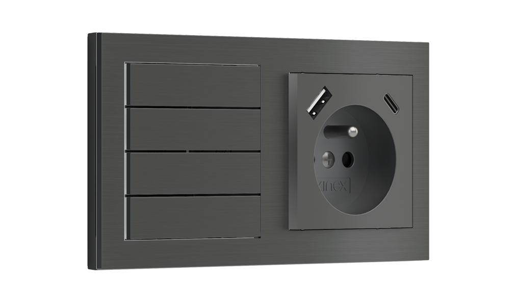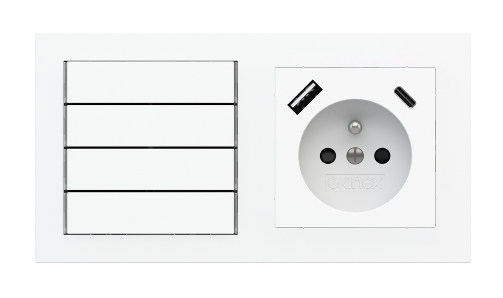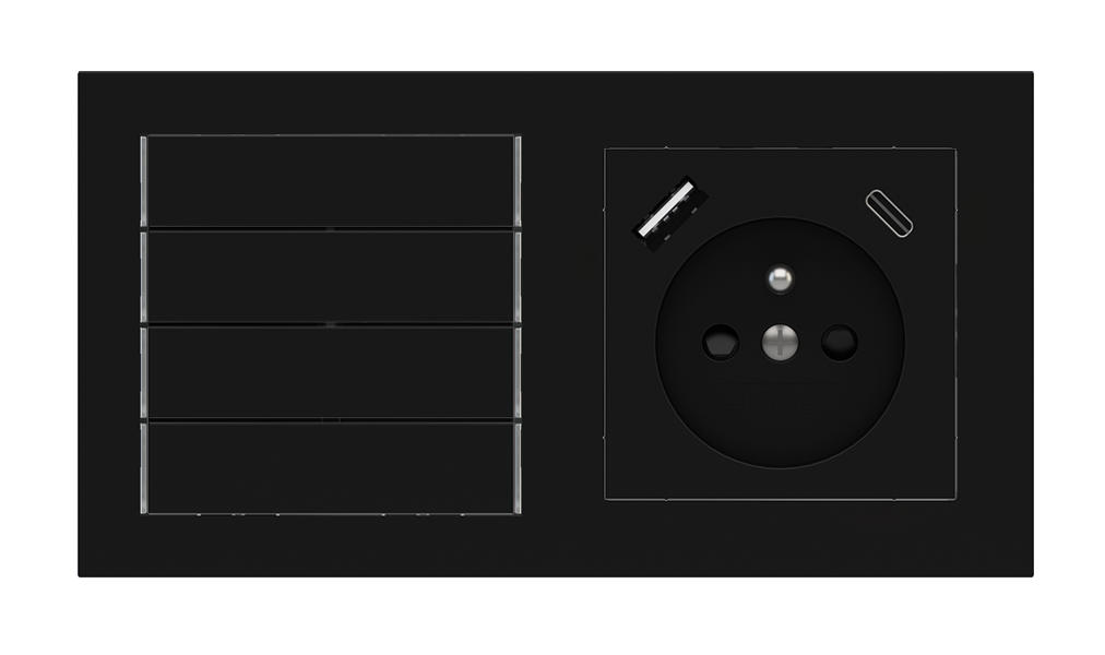 Kombinujte inteligentné ovládače s prvky tradičnej elektroinštalácie. Ovládače i zásuvky zdieľajú spoločný rámček, čo zabezpečuje jednotný a čistý vzhled interiéru.