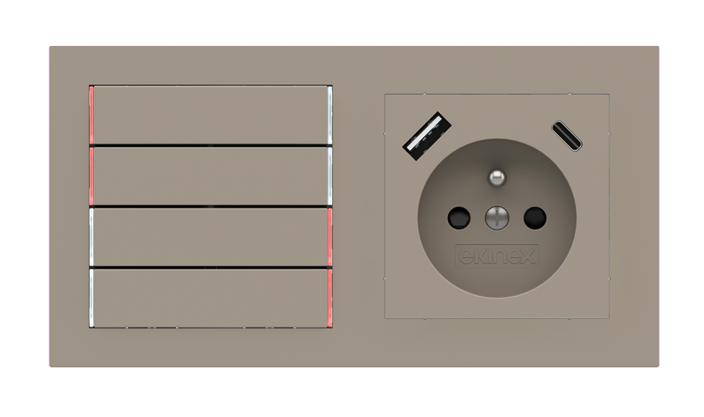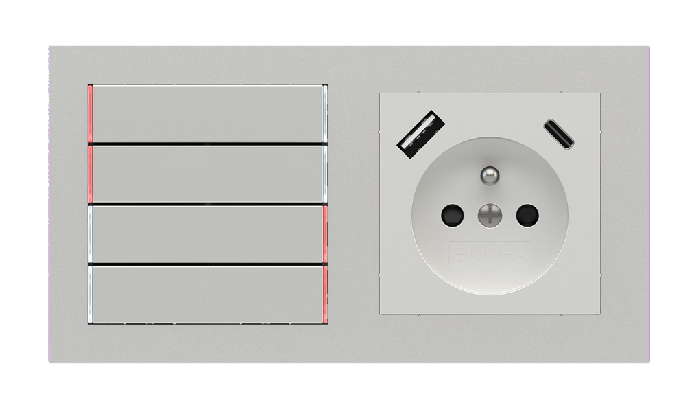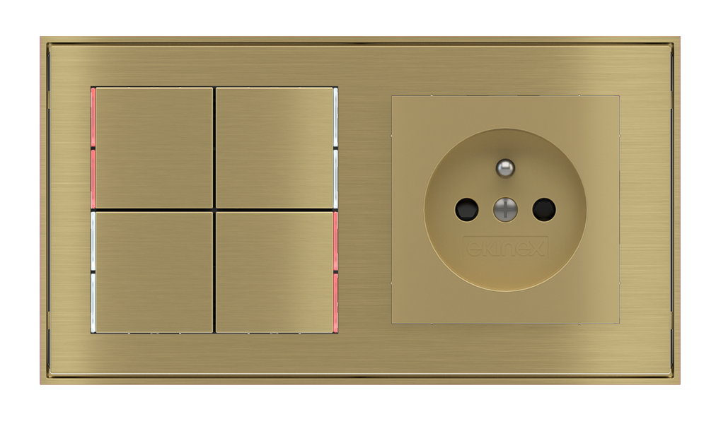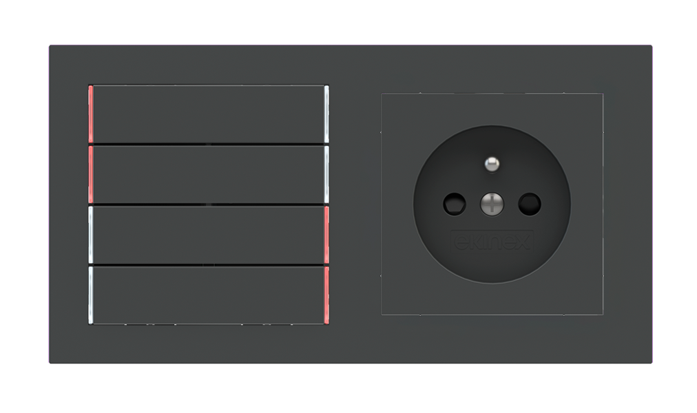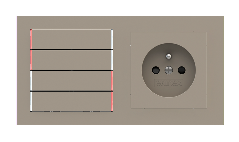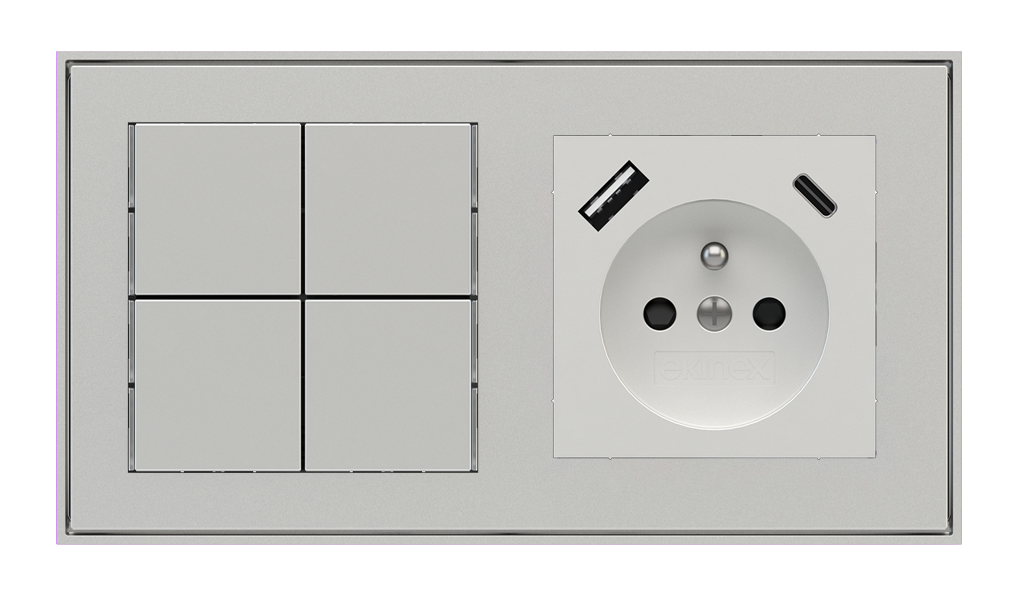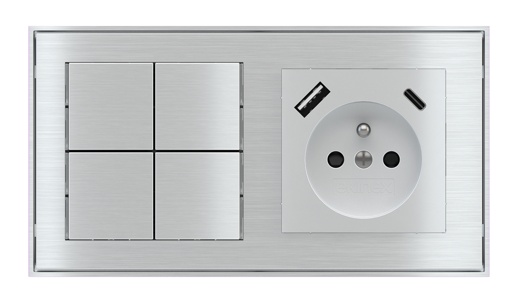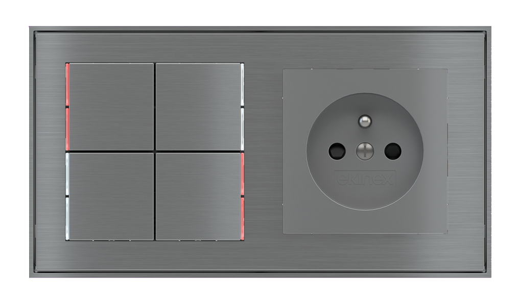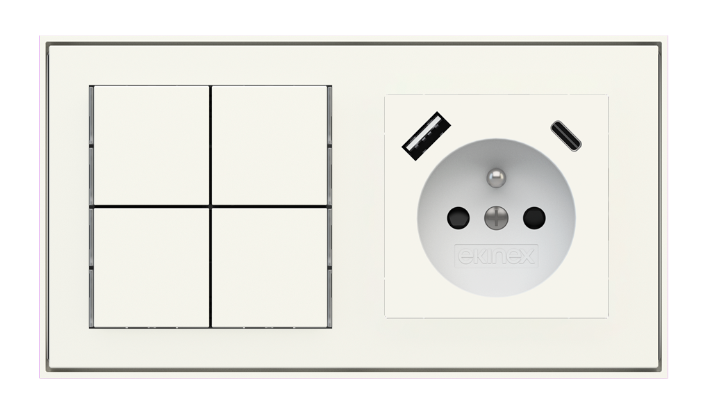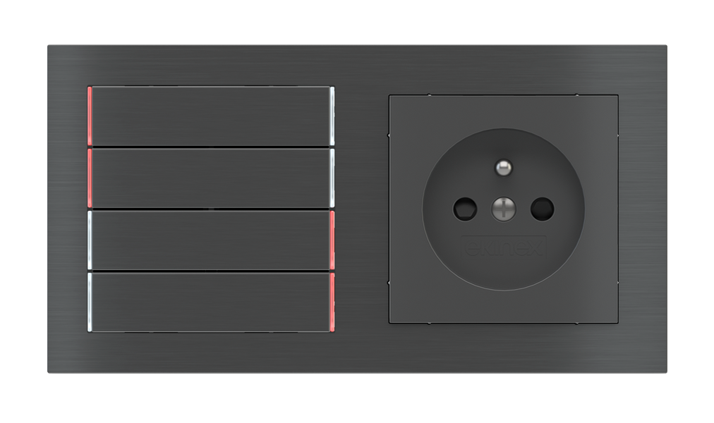 Kombinujte inteligentné ovládače s prvky tradičnej elektroinštalácie. Ovládače i zásuvky zdieľajú spoločný rámček, čo zabezpečuje jednotný a čistý vzhled interiéru.