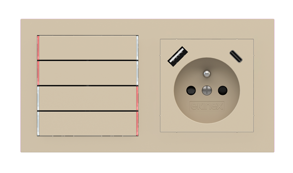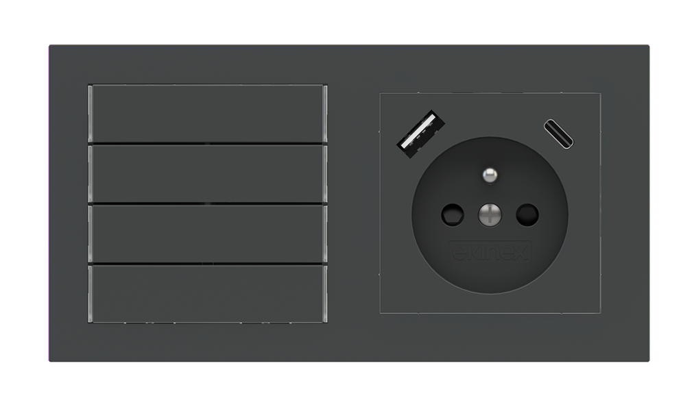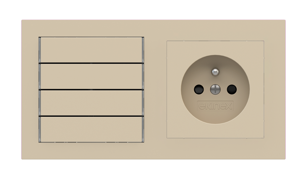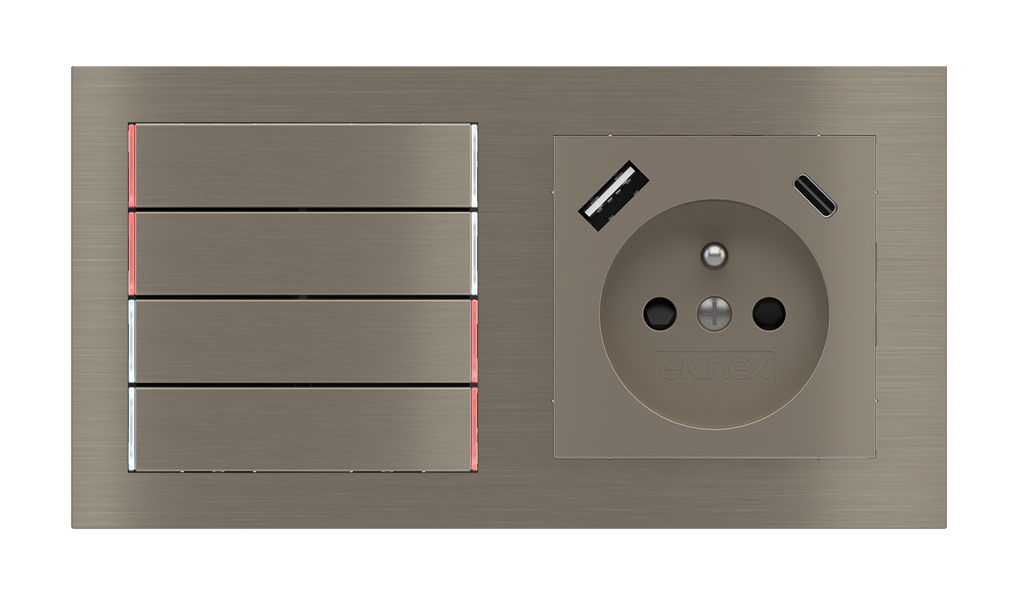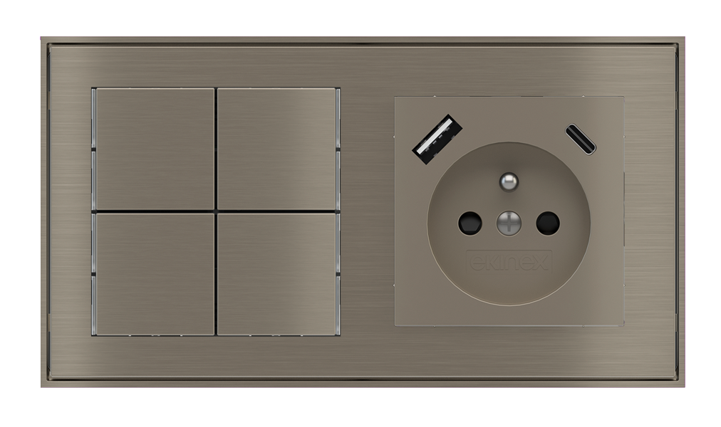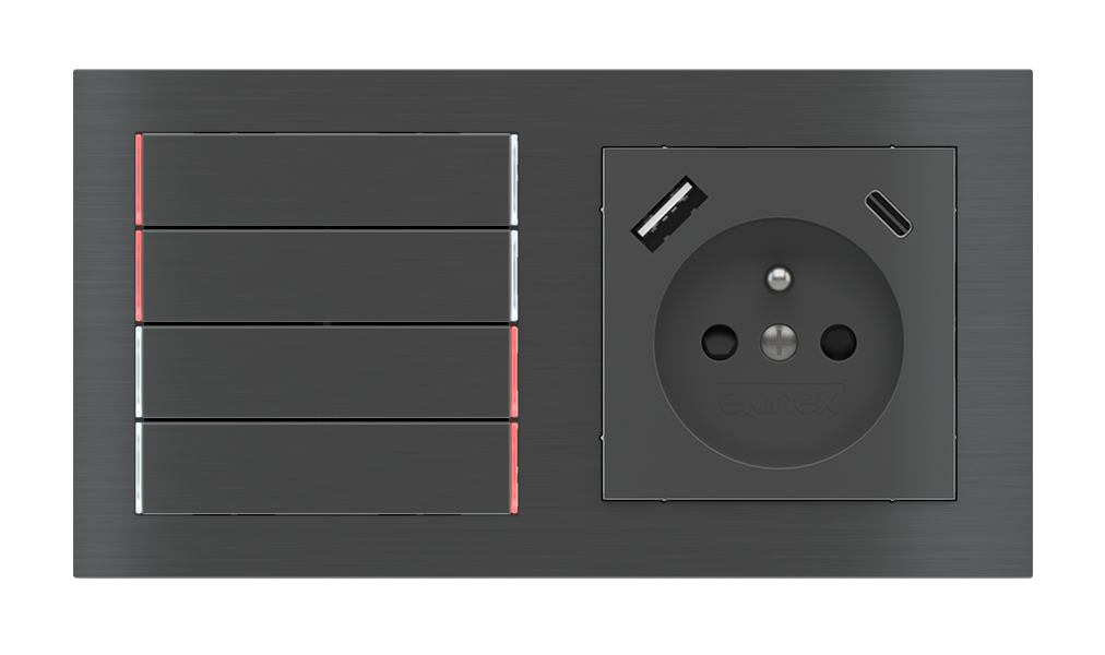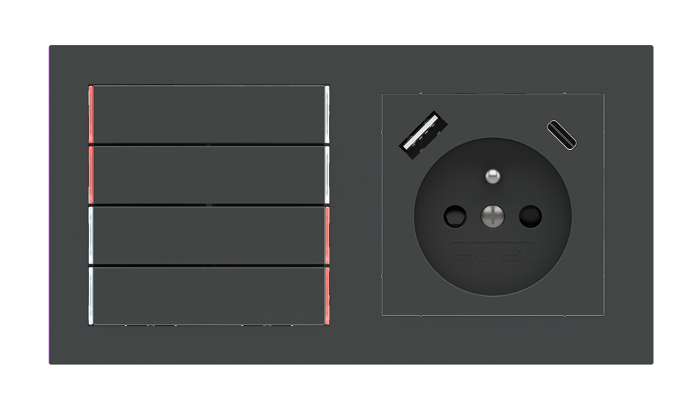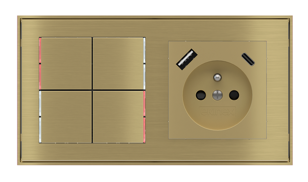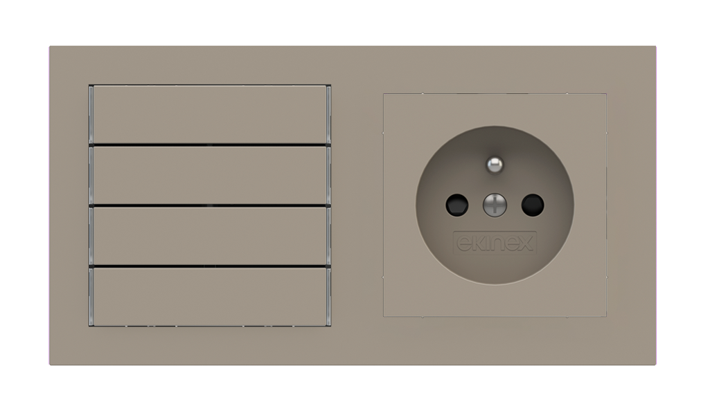 Kombinujte inteligentné ovládače s prvky tradičnej elektroinštalácie. Ovládače i zásuvky zdieľajú spoločný rámček, čo zabezpečuje jednotný a čistý vzhled interiéru.