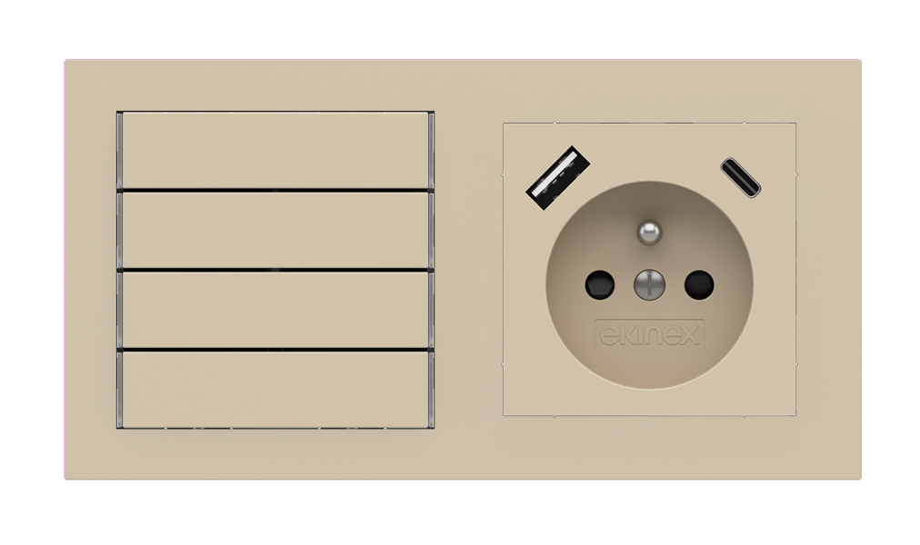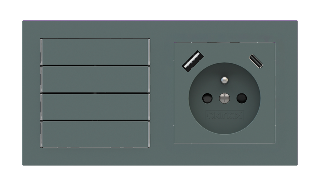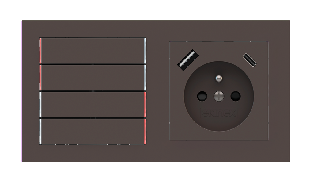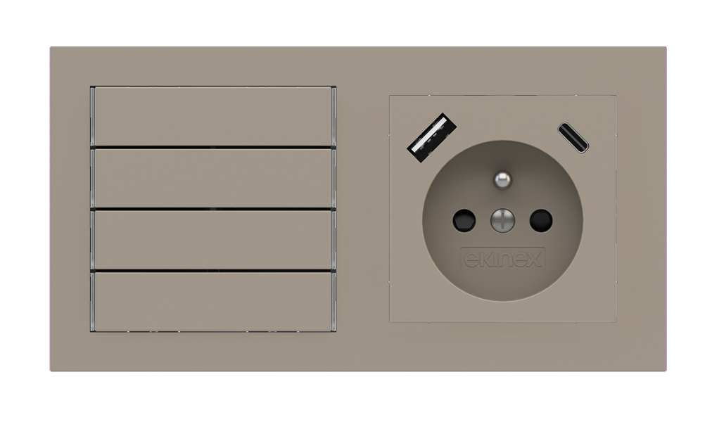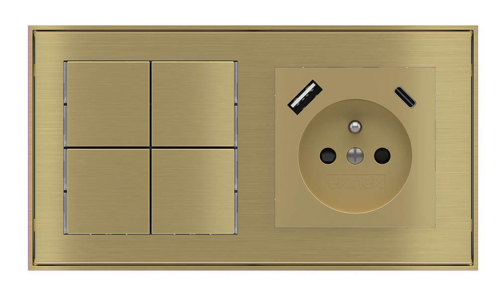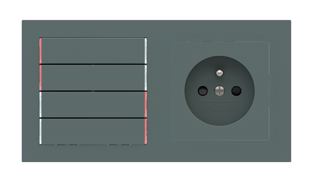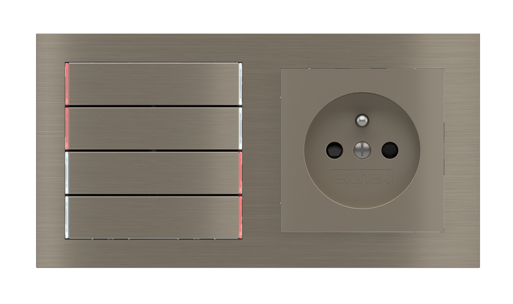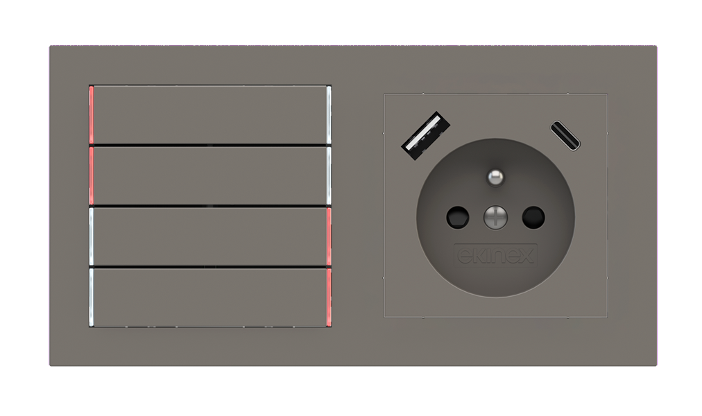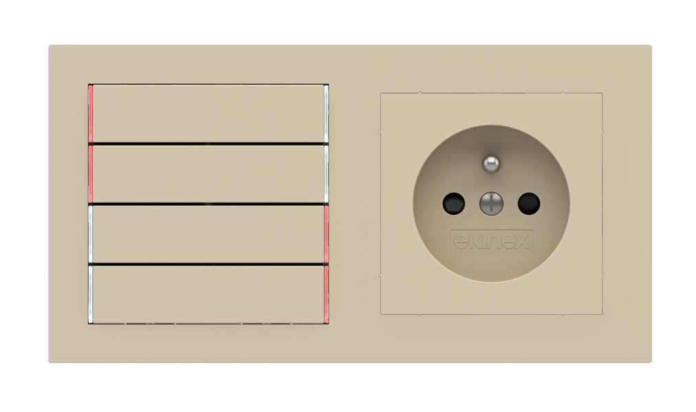 Kombinujte inteligentné ovládače s prvky tradičnej elektroinštalácie. Ovládače i zásuvky zdieľajú spoločný rámček, čo zabezpečuje jednotný a čistý vzhled interiéru.