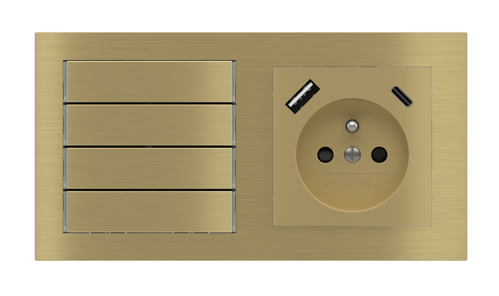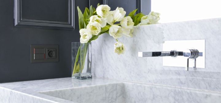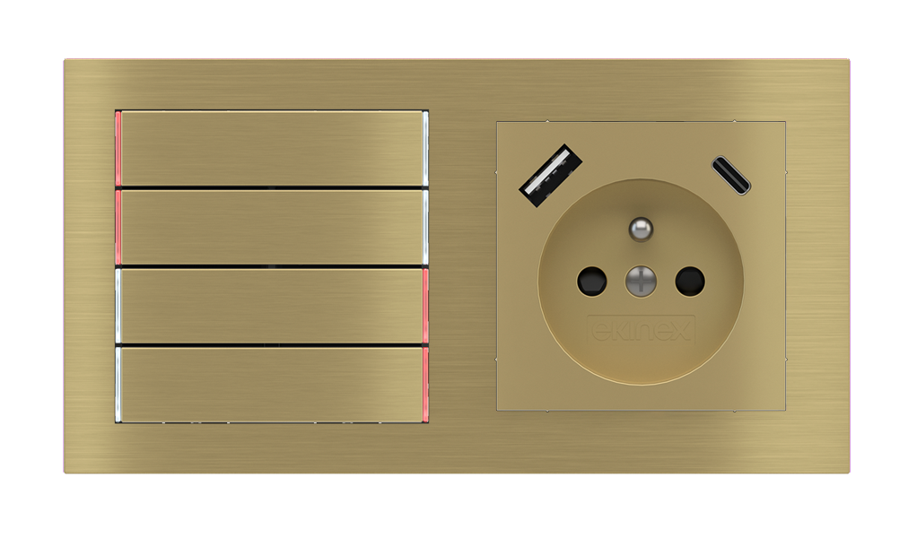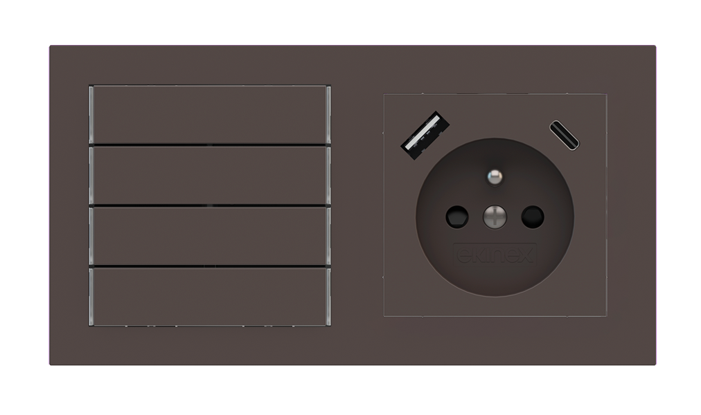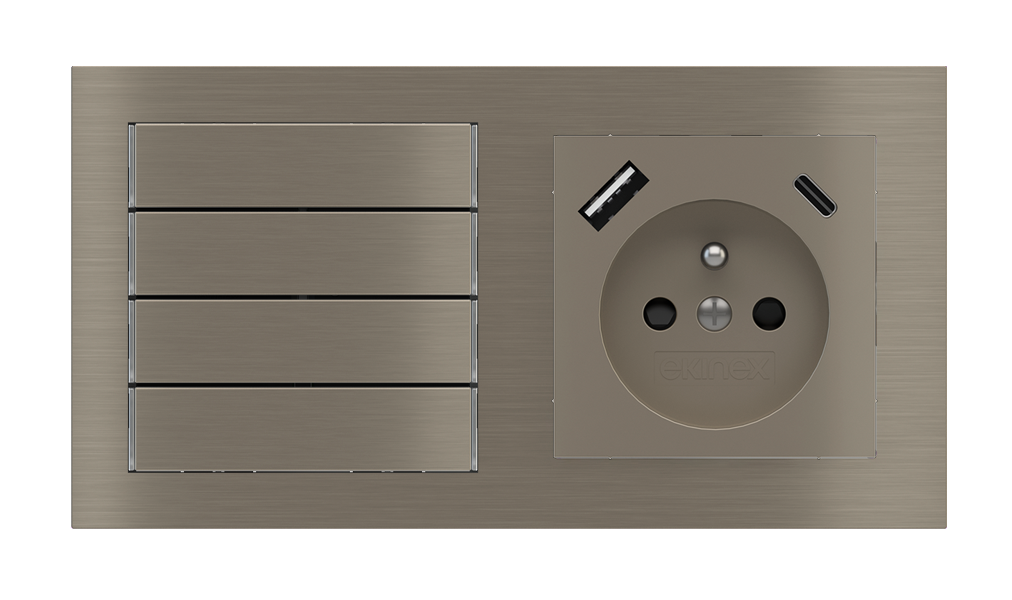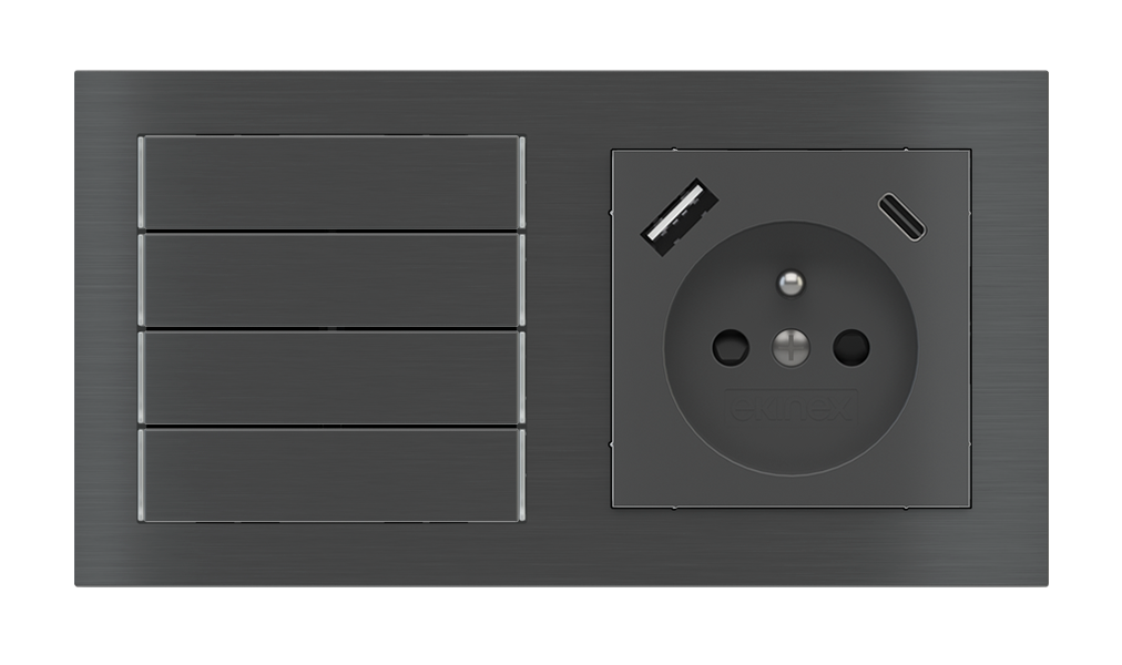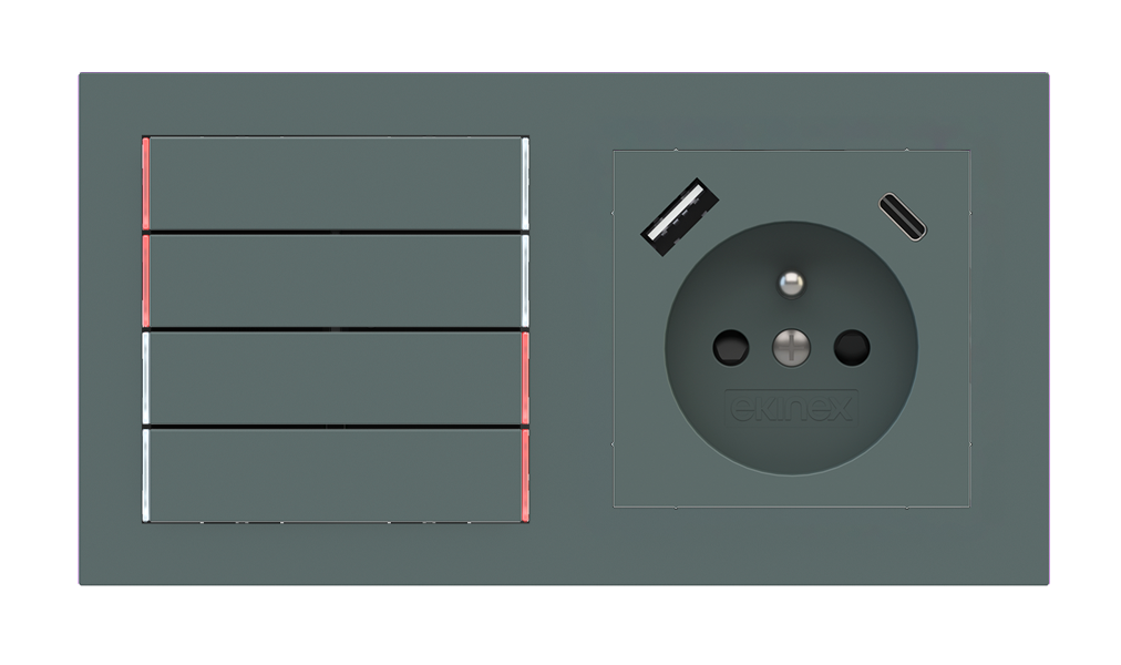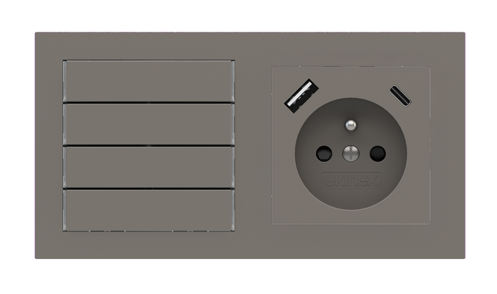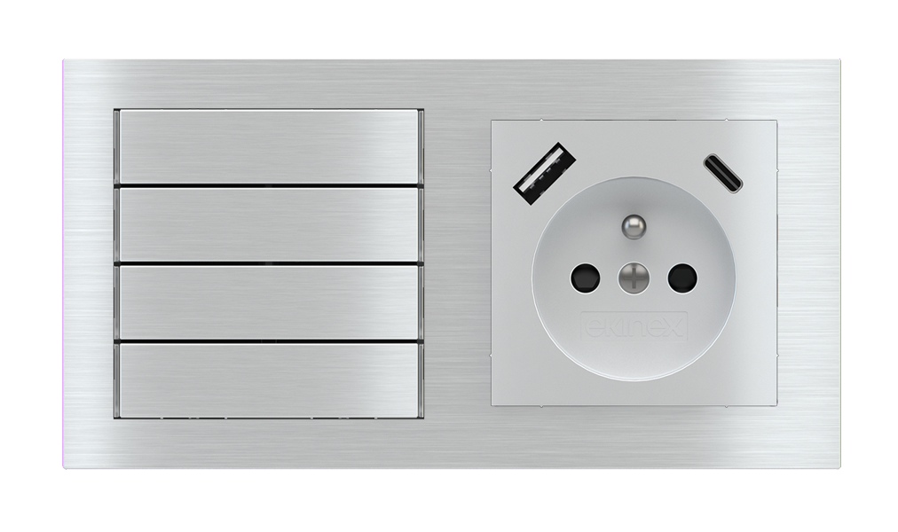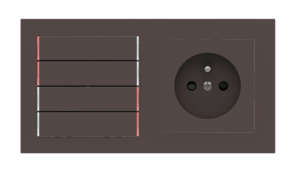 Kombinujte inteligentné ovládače s prvky tradičnej elektroinštalácie. Ovládače i zásuvky zdieľajú spoločný rámček, čo zabezpečuje jednotný a čistý vzhled interiéru.
