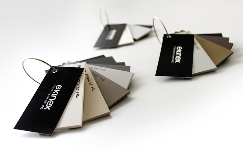 Praktický nástroj so vzorkami materiálov a farebných prevedení, ktoré Ekinex ponúka. Vďaka nim okamžite získate predstavu o vlastnostiach materiálu a posúdite, ako ladí s vaším interiérom. Color Ring máme k dispozícii pre materiály technopolymer, brúsený kov a Fenix NTM.
