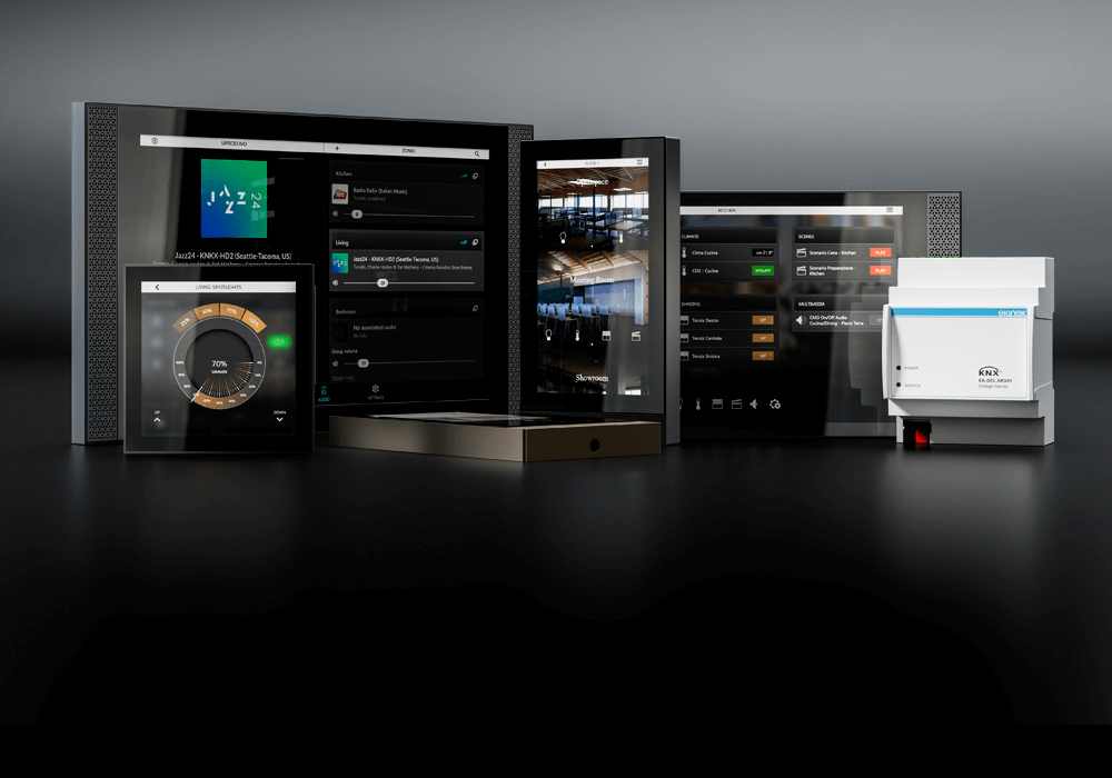 Ekinex prináša do vášho domova inteligentné riešenia s elegantným talianskym dizajnom. Ovládajte svetlá, teplotu, tienenie a oveľa viac intuitívne a s ľahkosťou.