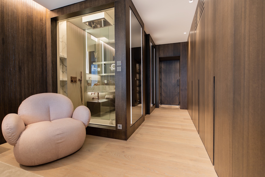 Byt na Ořechovke navrhol architekt Lukáš Třešňák pre svoju rodinu. Jeho snahou bolo vytvoriť funkčnú a praktickú domácnosť, ktorá bude zároveň napohľad elegantná a esteticky príjemná. Hlavným požiadavkom bolo intuitívne ovládanie a možnosť integrácie audia a videa. Dôležité pre pohodlný život bolo aj plne ovládateľné motorizované tienenie (vonkajšie aj vnútorné), ovládanie vykurovania, chladenia a osvetlenia s možnosťou voľby rôznej intenzity a farieb.