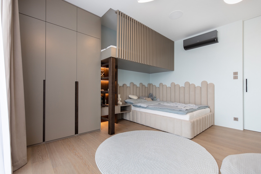 V byte boli nainštalované bezrámečkové ovládače Série FF s LED podsvietenim v prevedení Fenix NTM® s hodvábnym potlačou odolným proti odtlačkom aj poškriabaniu, ktorý sa do domácnosti s deťmi výborne hodí.