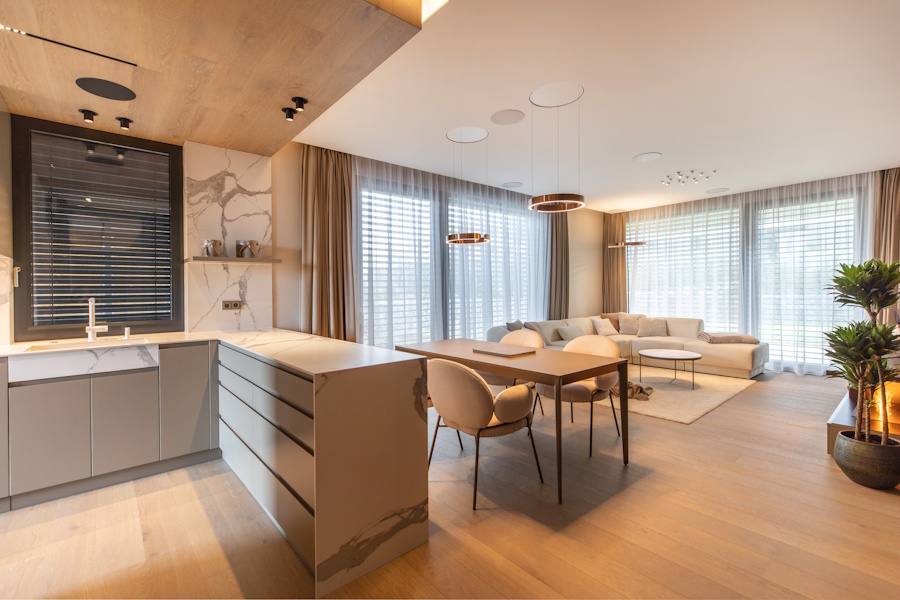 Automatizácia inteligentnej domácnosti je tu veľmi komplexná – od vykurovania, tienenia (vonkajšieho aj vnútorného), chladenia, video interkomu, bezpečnosti, osvetlenia až po integrovaný viaczónový audio-video systém. A všetko tu funguje k maximálnej spokojnosti všetkých členov domácnosti.